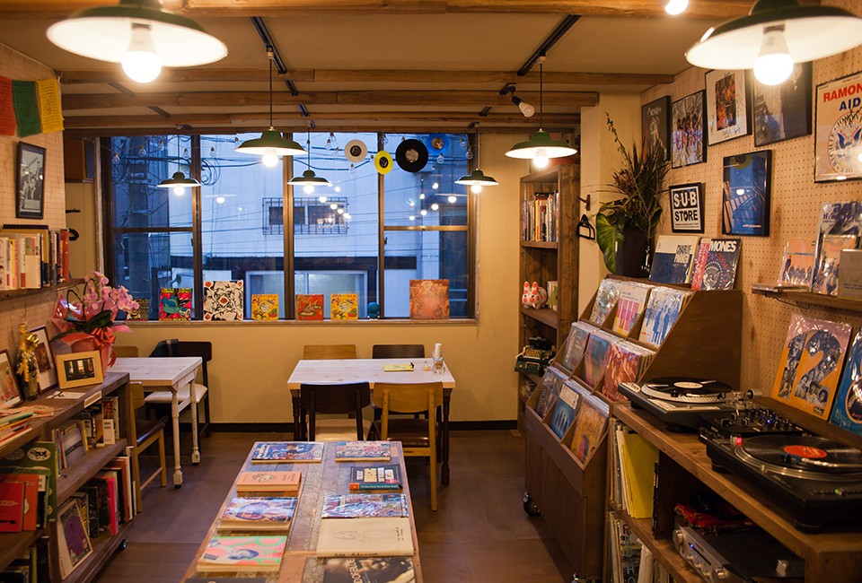 普段は中古レコードと古本を楽しめるカフェとして営業しているので、スピーカーや基本的なレコード機器は揃っております。また、店舗内の壁がろ面パンチングボードなので、比較的自由に展示物等もしていただけると思います。